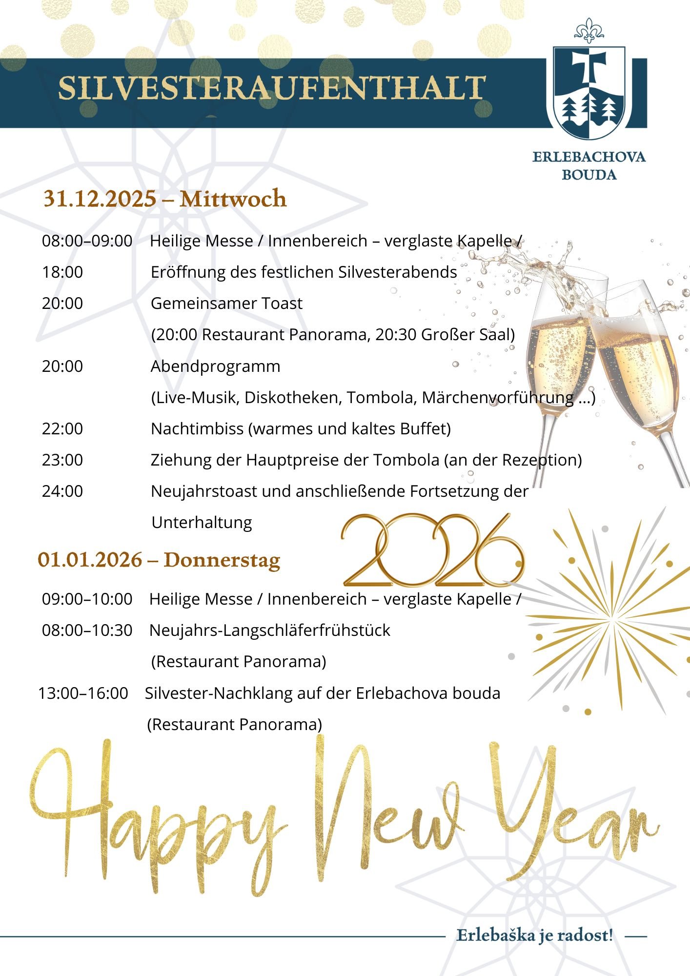 - festliches Silvesterdinner + kaltes Buffet während des ganzen Abends