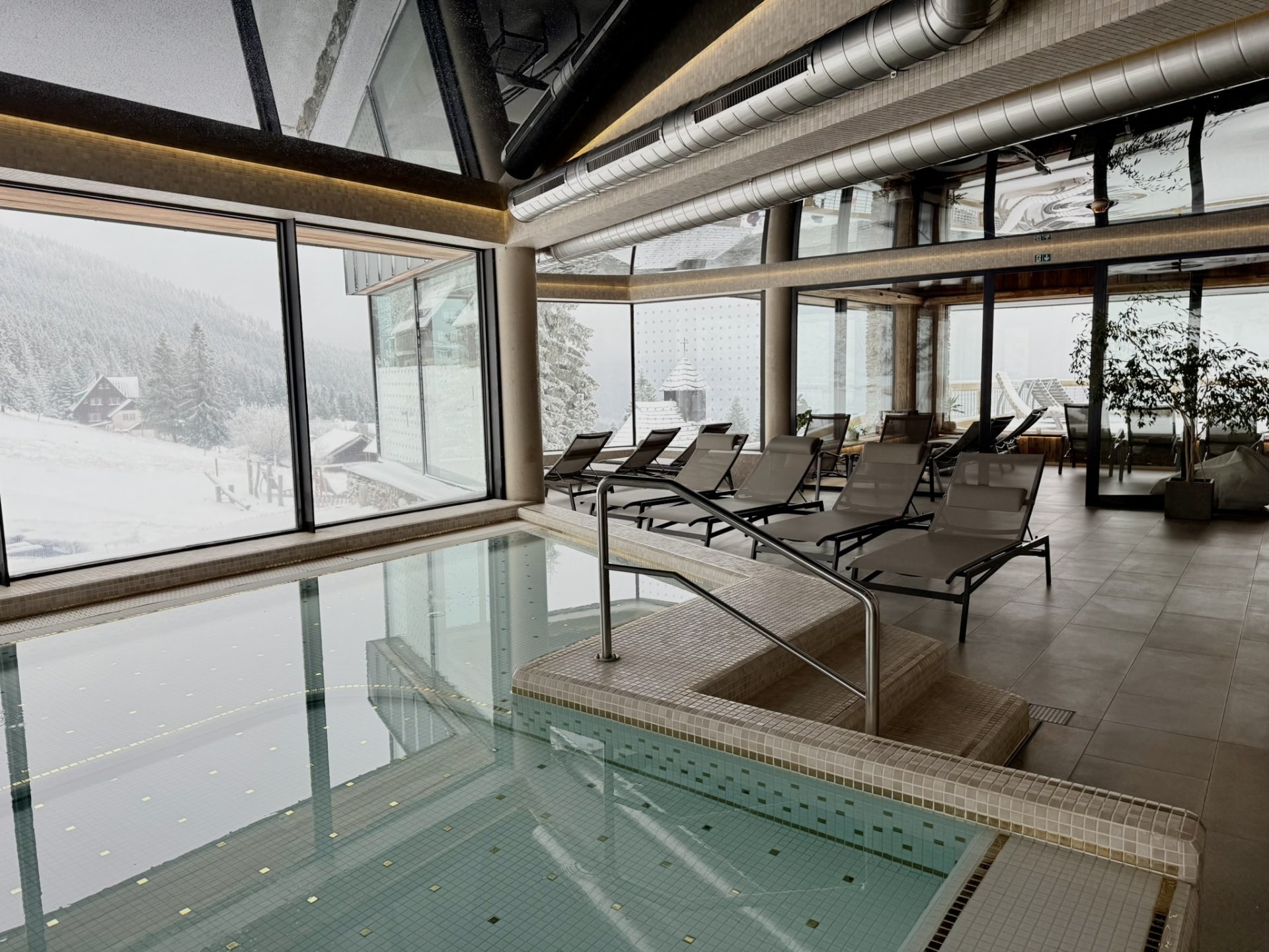 Genießen Sie ultimative Entspannung in unserem panoramischen Wellnesscenter, das unvergessliche Ausblicke auf die wunderschöne Natur der Krkonoše bietet! Gäste, die in der Erlebachova Bouda und Stodola Deluxe wohnen, haben während ihres gesamten Aufenthalts unbegrenzten Zugang, einschließlich des Pools mit Kinderbereich, der Saunalandschaft und der Whirlpools. Regenerieren Sie Körper und Seele in der angenehmen Saunaatmosphäre oder gönnen Sie sich luxuriöse Massagen für perfekten Komfort. Kommen Sie, um sich zu entspannen und neue Energie zu tanken, egal ob es regnet, schneit oder die Sonne scheint – unser Wellnessbereich ist für Sie da!