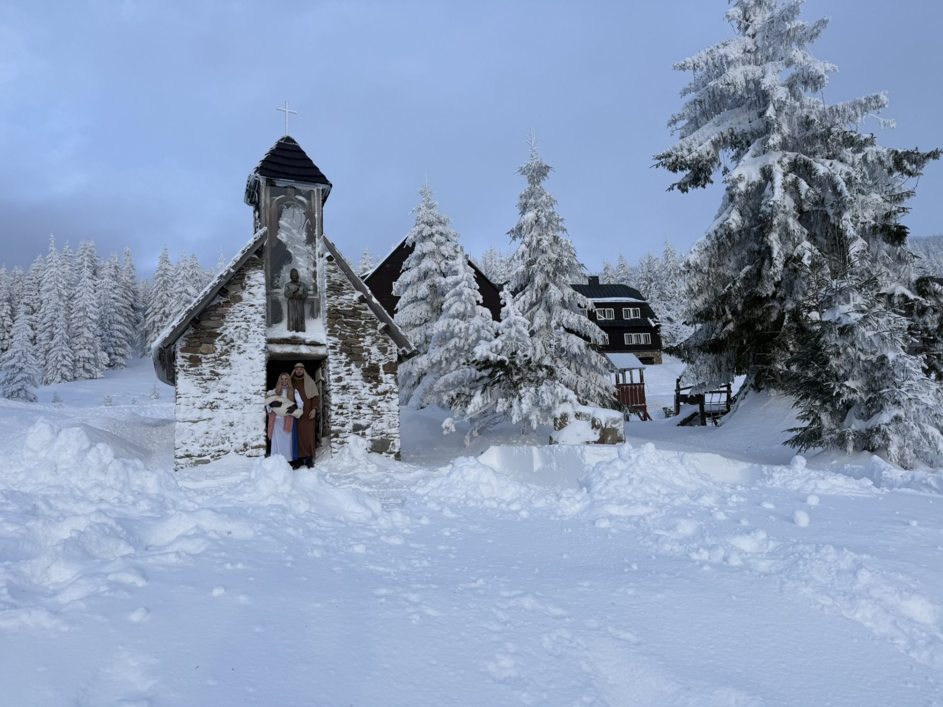 - 15:45 Uhr Messe in der inneren Kapelle der Erlebachhütte.