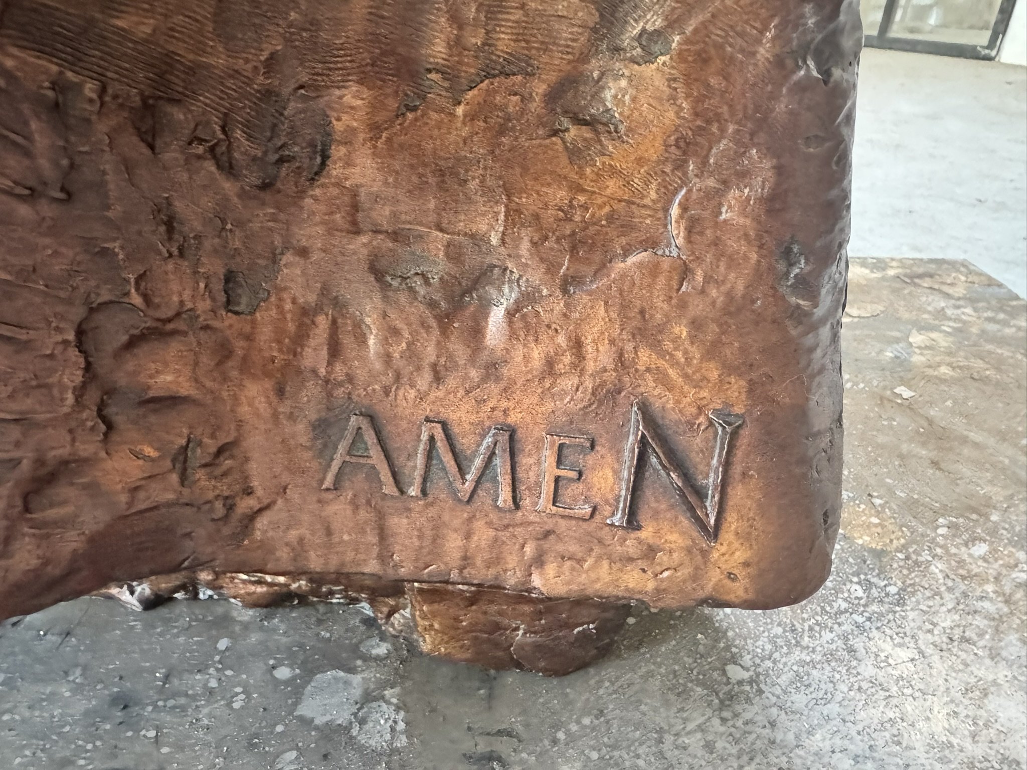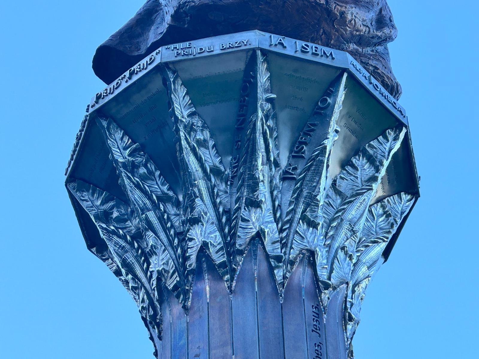Na čtyřmetrovém sloupu je ve 24 jazycích napsaná modlitba Nebojte se, nemějte strach z Krista. „Jazyky obepínají celý svět, je mezi nimi například japonština, hebrejština, arabština, ruština, ale také romština nebo aramejština,“ sdělil Jiří Tomášek. Jen dát dohromady překlady podle něj zabralo rok a půl. Kolem sloupu jsou čtyři základní kameny nasměrované na čtyři světové strany. Socha je ke koruně připevněná chemickou kotvou. Základy sloupu se nacházejí v třímetrové hloubce. Žulový balvan, ze kterého sloup vyrůstá, Tomáškovi našli nedaleko odsud po loňské povodni. Vzniknou celkem čtyři obdobné sochy. Druhá zamíří v září do Nazareta v Izraeli, další do slovinského Mariboru, poslední socha pravděpodobně pojede do Sýrie.